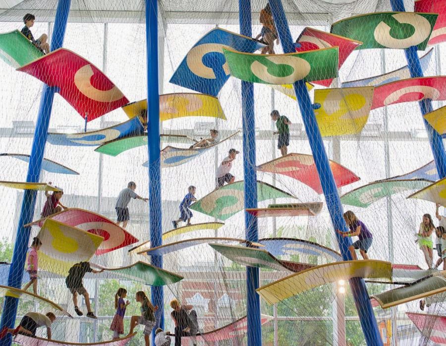 A Luckey Climber is a three dimensional sculpture designed for children. Climbers encourage physical activity and aid in developing critical gross motor skills. Climbers also offer the sort of imaginative play experience that is important for intellectual development. Made of bent plywood platforms that are suspended by steel pipes and cables, climbers are visually elegant works of art that are also part jungle gym and once alive with children they become what Thomas Luckey called "fountains of children."Do you want to climb on these as badly as I do? Read more about them on their website.